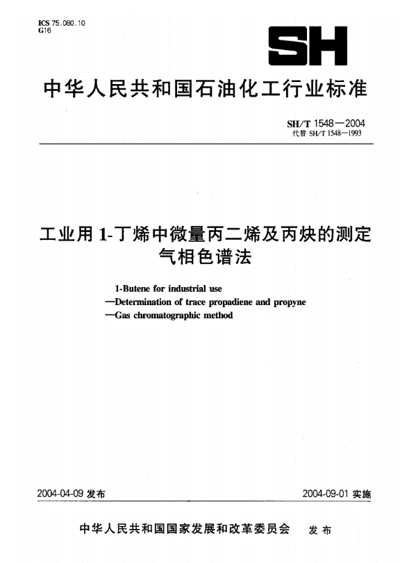 本標準規(guī)定了用氣相色譜法測定工業(yè)用1一丁烯中微量丙二烯及丙炔的含量。